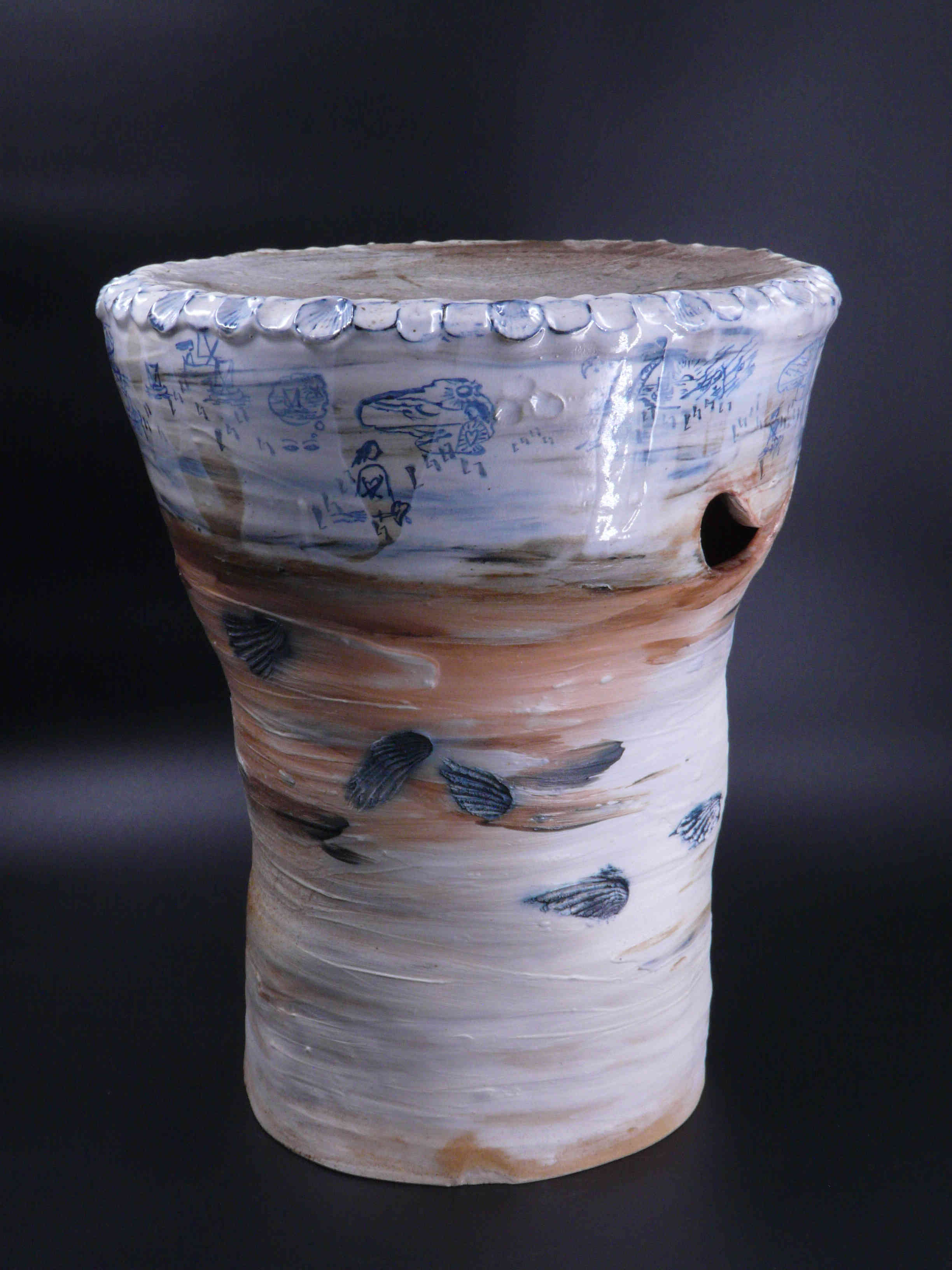 Cuisson à bois, tournage. ht. 45 cm, diam. 37 cm